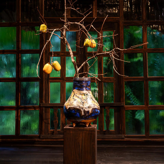 Shaped like a Thai bamboo basket, the one-of-a-kind ceramic vase “Forest Scent” seems to hold within it the fresh, pure air of Northwest mountains and forests. Bright colors and gentle lines sketch leaves, streams, and nature’s rhythms, carrying both an optimistic spirit and artist Nguyễn Tú from Khoa’s Decor’s deep love for nature. This unique piece exists in only one edition, handcrafted entirely by the artist.