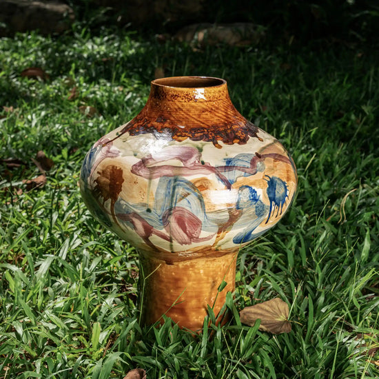 Inspired by the image of a lantern in the wind, the one-of-a-kind ceramic vase “Mountain Wind” reflects the deep emotions of artist Nguyễn Tú from Khoa’s Decor. Through it, he shares a message: let the winds carry away your worries, and the soul will find its calm again. This unique work exists in only one edition, handcrafted entirely by the artist himself.